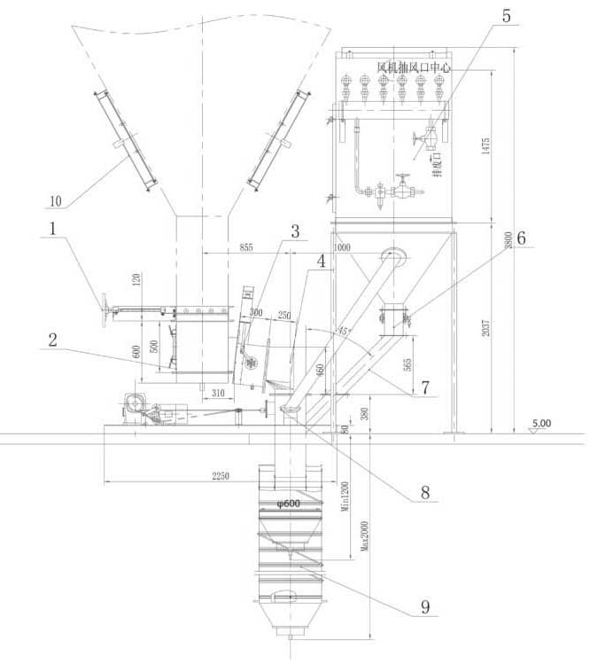 SZ-II型散裝機分直通式和非直通式,根據工藝布置需要而定。